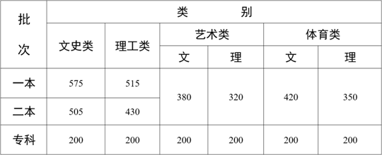 云南省2022年普通高校招生錄取最低控制分?jǐn)?shù)線