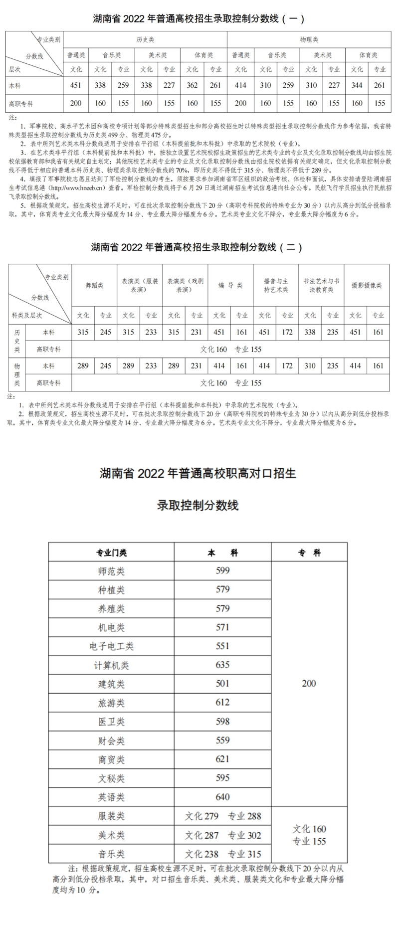 | 湖南省2022普通高校招生錄取控制分?jǐn)?shù)線 |