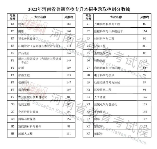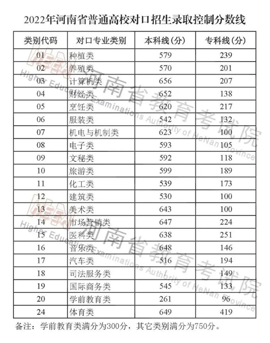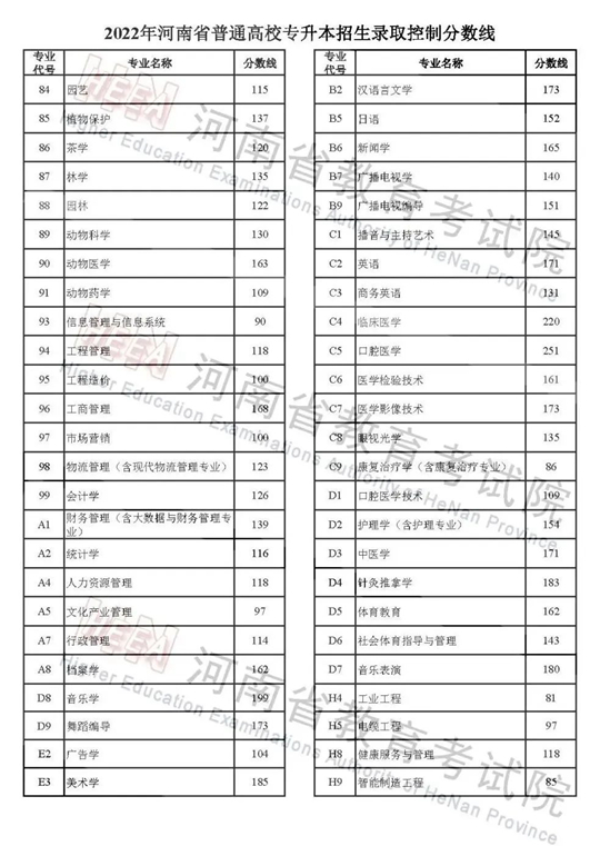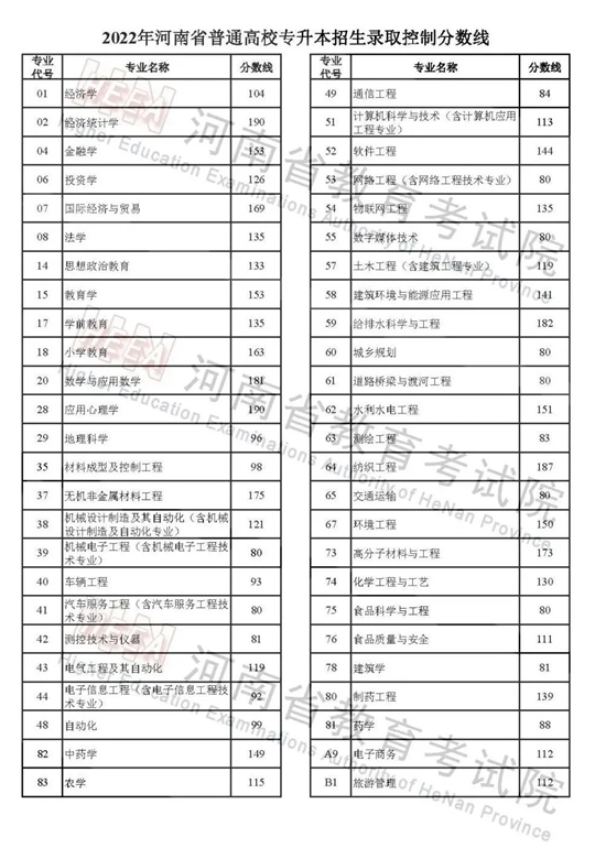 2022年河南省普通高校招生錄取控制分?jǐn)?shù)線