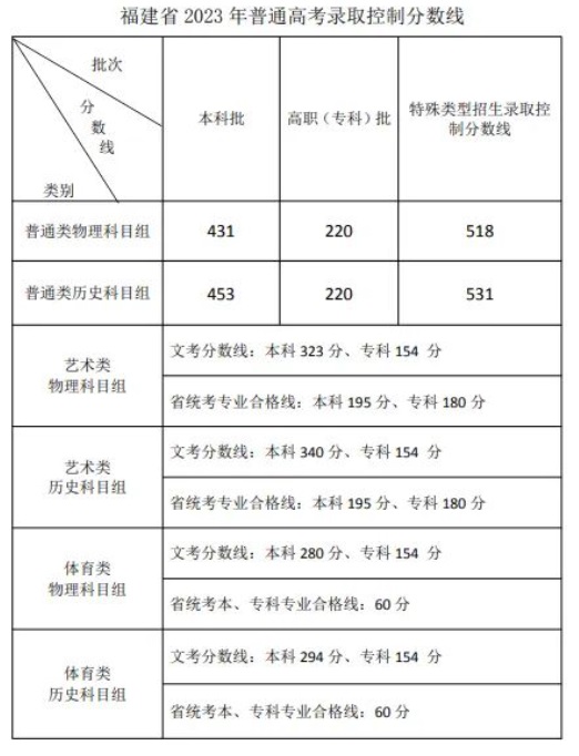 | 福建省2023年普通高考錄取控制分?jǐn)?shù)線 |
