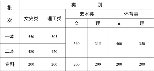云南省2024年普通高校招生錄取最低控制分數(shù)線