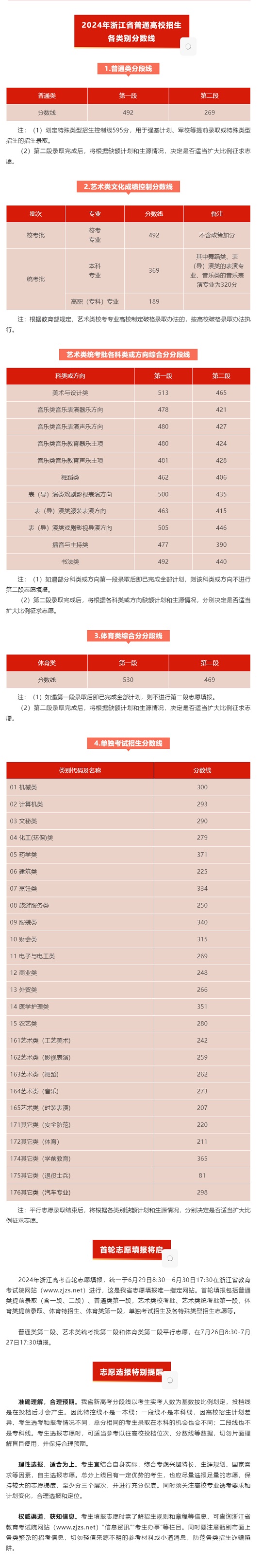 浙江2024年高考各類各段分數線剛剛出爐!今天(25日)下午15時起,考生可通過浙江省教育考試院網站(www.zjzs.net)、浙江考試微信或“浙里辦”,憑準考證號和本人預設的密碼等查詢自己的成績。