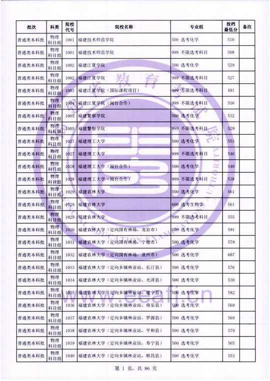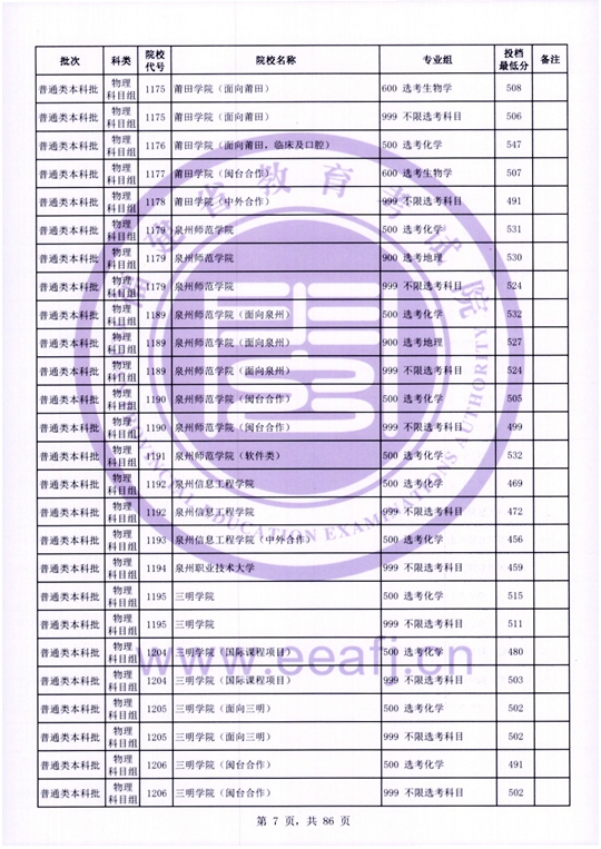 福建:2024年普通類本科批常規(guī)志愿院校專業(yè)組投檔最低分公布(物理科目組)