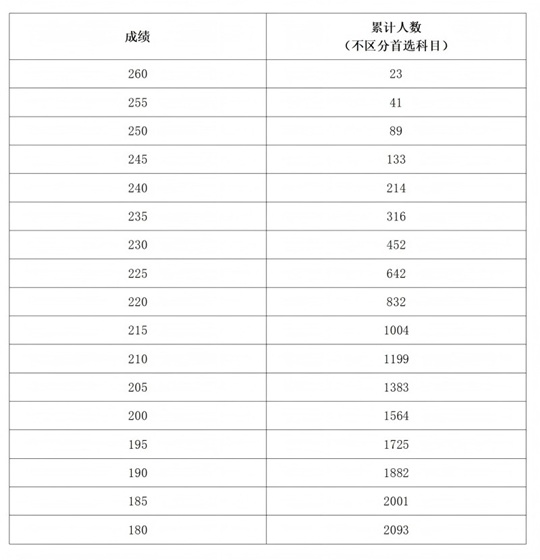 注:累計人數(shù)指該對應分數(shù)及以上考生累計人數(shù)