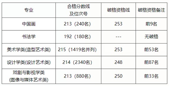 3、破格錄取范圍僅適用于部分組織校考的藝術(shù)類(?迹⿲I(yè)(類),含中國(guó)畫、美術(shù)學(xué)類、設(shè)計(jì)學(xué)類、戲劇與影視學(xué)類。若上述專業(yè)(類)滿足條件的錄取人數(shù)未達(dá)到招生計(jì)劃數(shù),經(jīng)學(xué)校研究后啟用破格錄取。