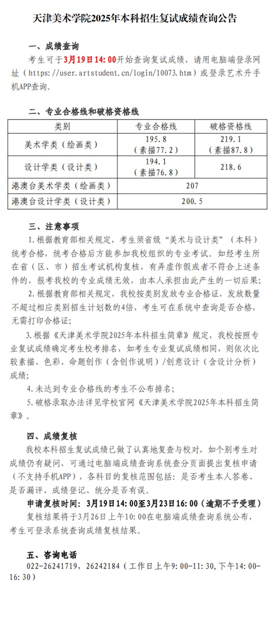天津美術(shù)學(xué)院2025年本科招生復(fù)試成績查詢公告