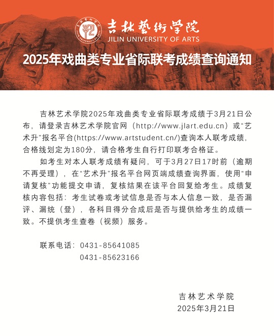 吉林藝術(shù)學(xué)院2025年戲曲類專業(yè)省際聯(lián)考專業(yè)課成績合格線