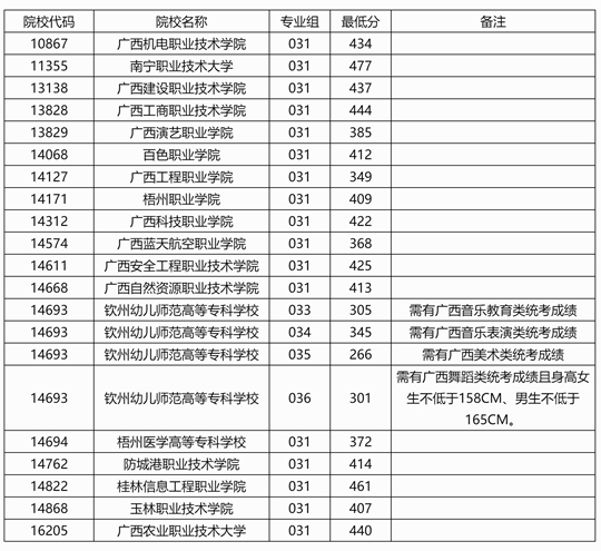 廣西2025年高職單招批第二次征集投檔最低分?jǐn)?shù)線