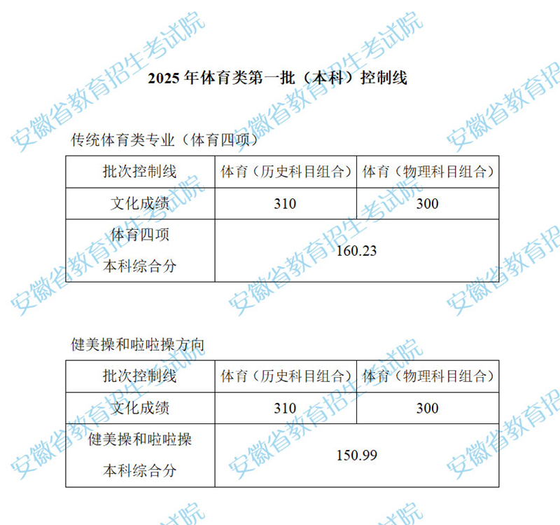 安徽:2025年體育類第一批(本科)控制線
