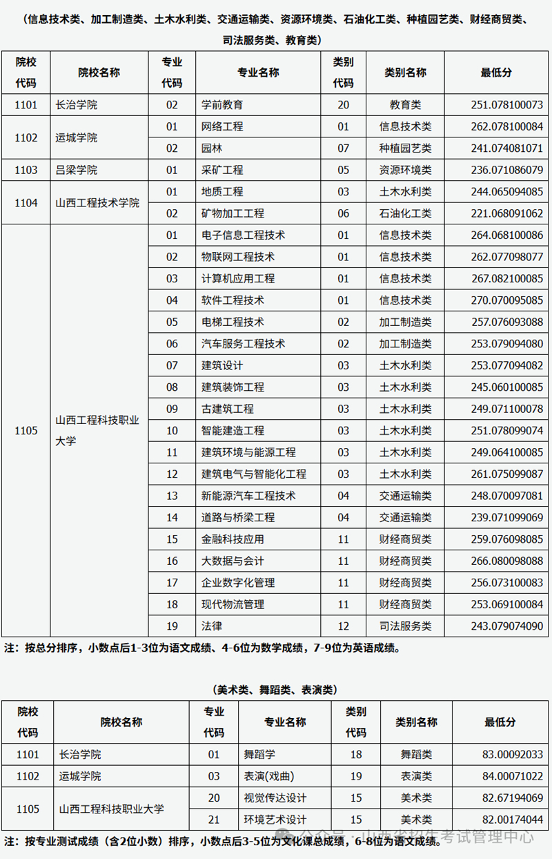 山西省2025年對(duì)口升學(xué)錄取第一批本科院校投檔最低分