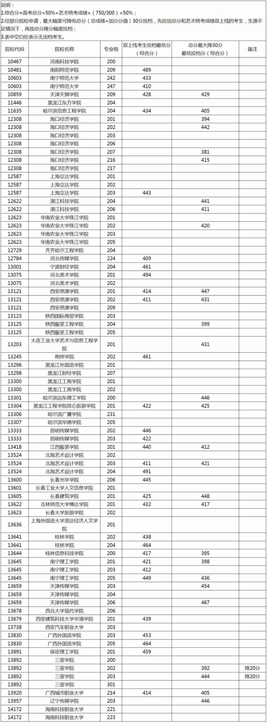 2025年本科提前批藝術(shù)類本科第二批院校專業(yè)組第三次征集投檔最低分?jǐn)?shù)線(首選物理科目組)
