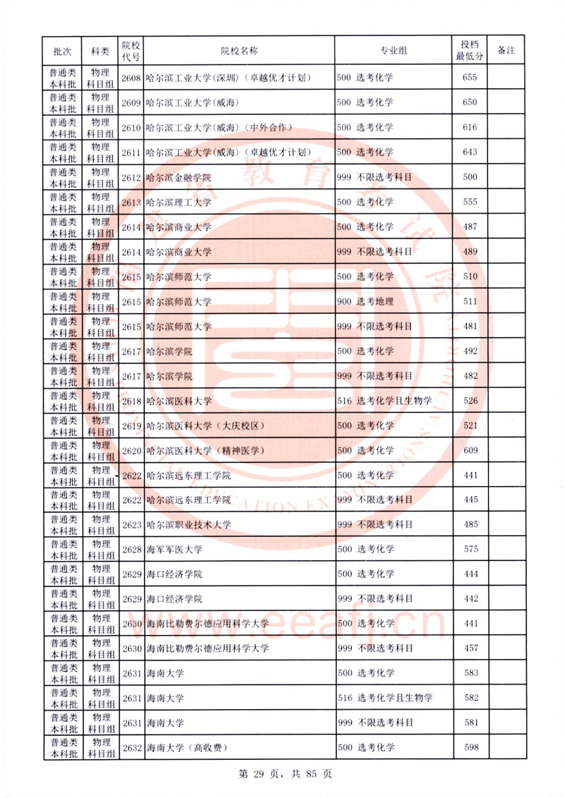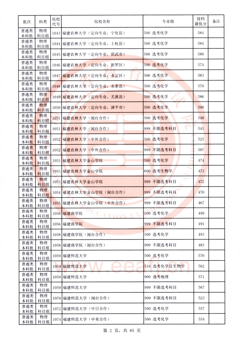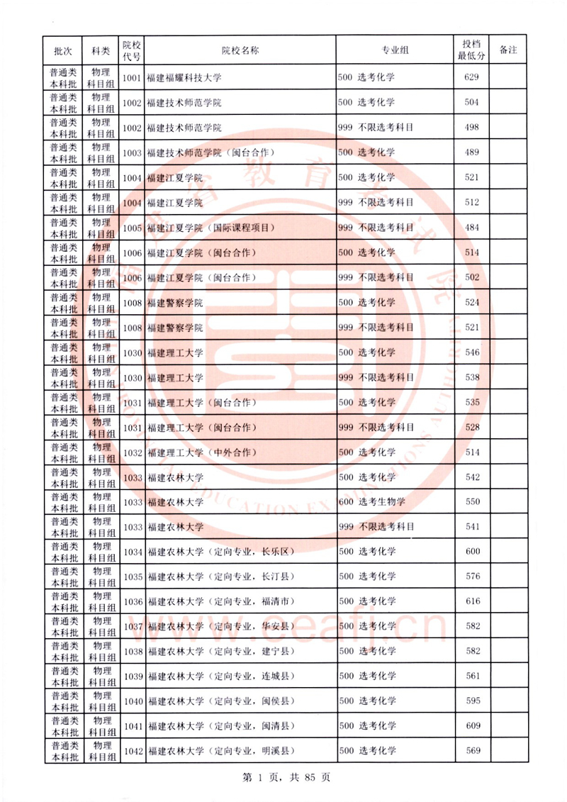 福建:2025年普通類本科批常規(guī)志愿院校專業(yè)組投檔最低分公布(物理科目組)