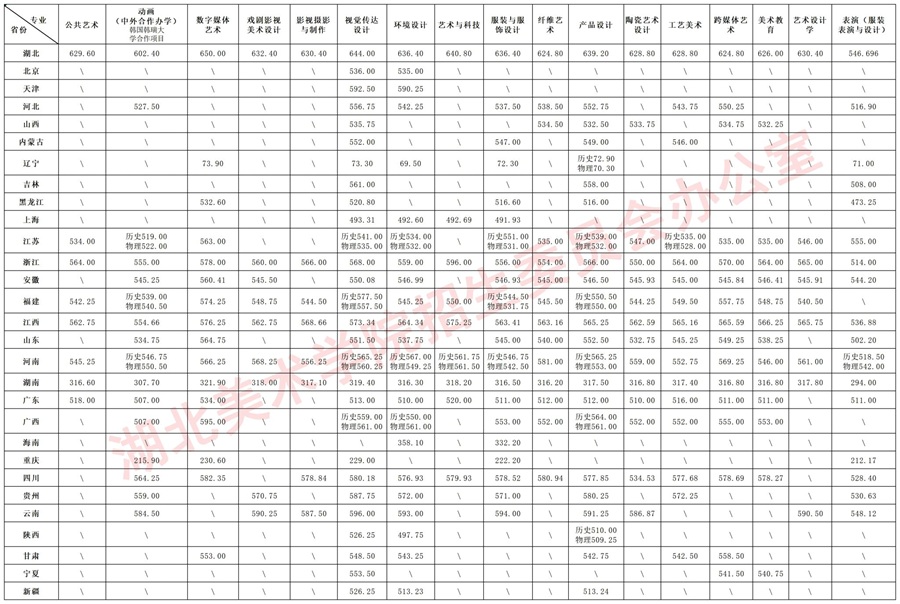 備注:1.標(biāo)注歷史:文科類或首選科目為歷史;2.標(biāo)注物理:理科類或首選科目為物理;3.未標(biāo)注:默認(rèn)文科類、首選科目為歷史,或藝術(shù)(不分文理);4.以上各省各專業(yè)投檔成績僅供參考,最終以各省招考機(jī)構(gòu)公布的投檔成績?yōu)闇?zhǔn)。
