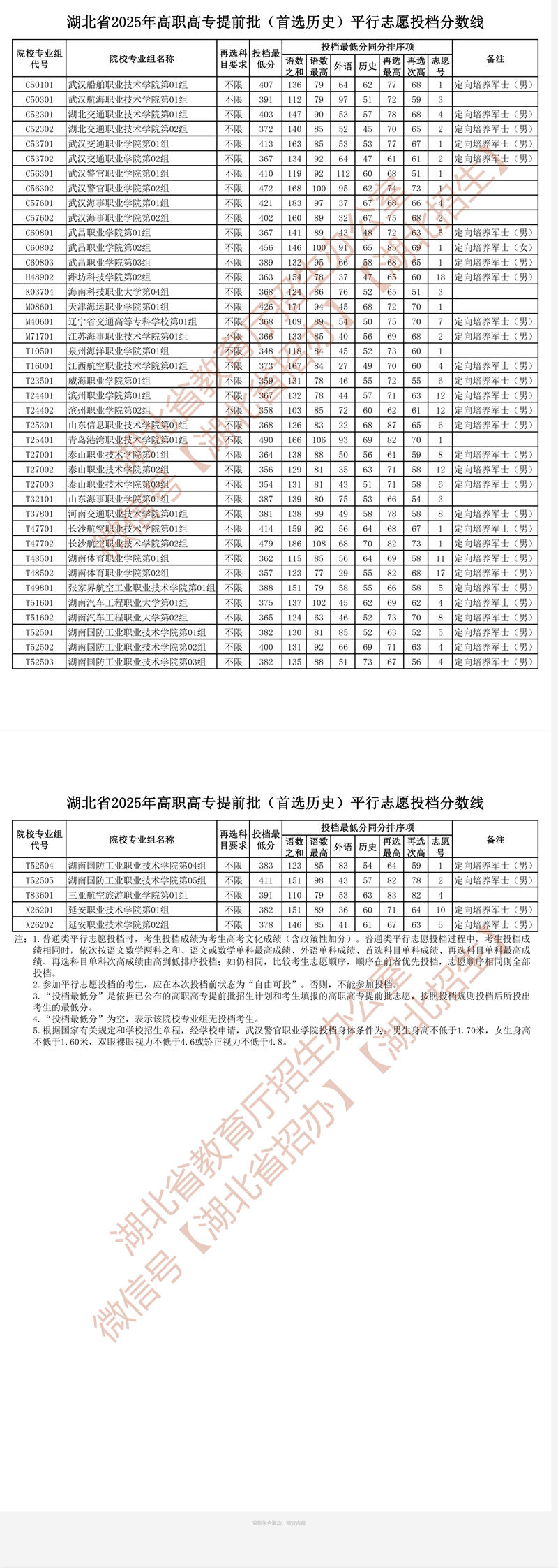 | 湖北省2025年高職高專提前批(首選歷史)平行志愿投檔分?jǐn)?shù)線 |