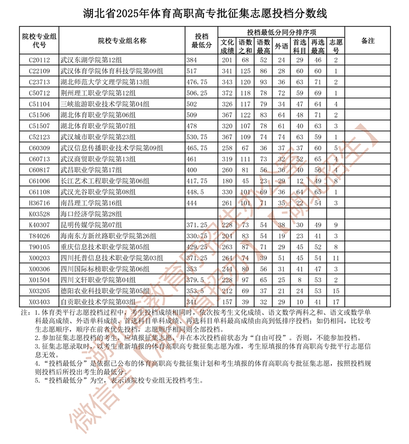 | 湖北省2025年體育高職高專批征集志愿投檔分?jǐn)?shù)線 |