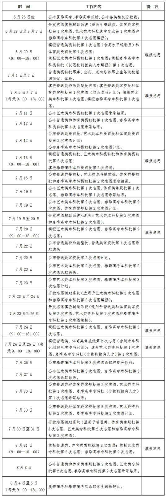 山東省2023年普通高校招生錄取工作進(jìn)程表