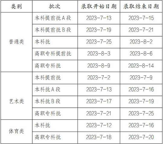 | 重慶市2023年普通高考錄取時(shí)間安排 |