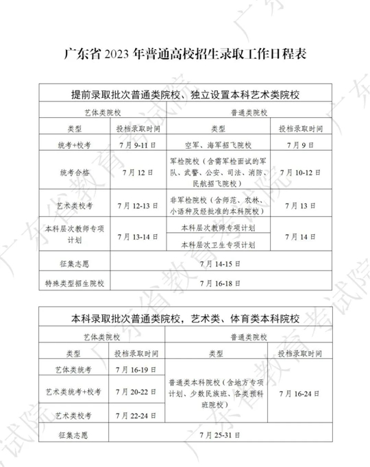 廣東省2023年普通高校招生錄取工作日程表