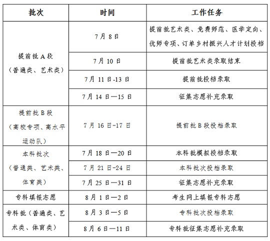 | 吉林省2024年普通高校招生錄取工作時(shí)間安排 |