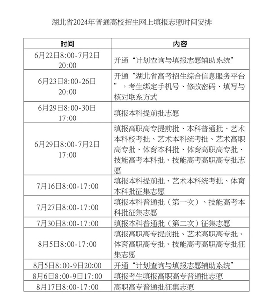 | 湖北省2024年普通高校招生網(wǎng)上填報志愿時間安排 |