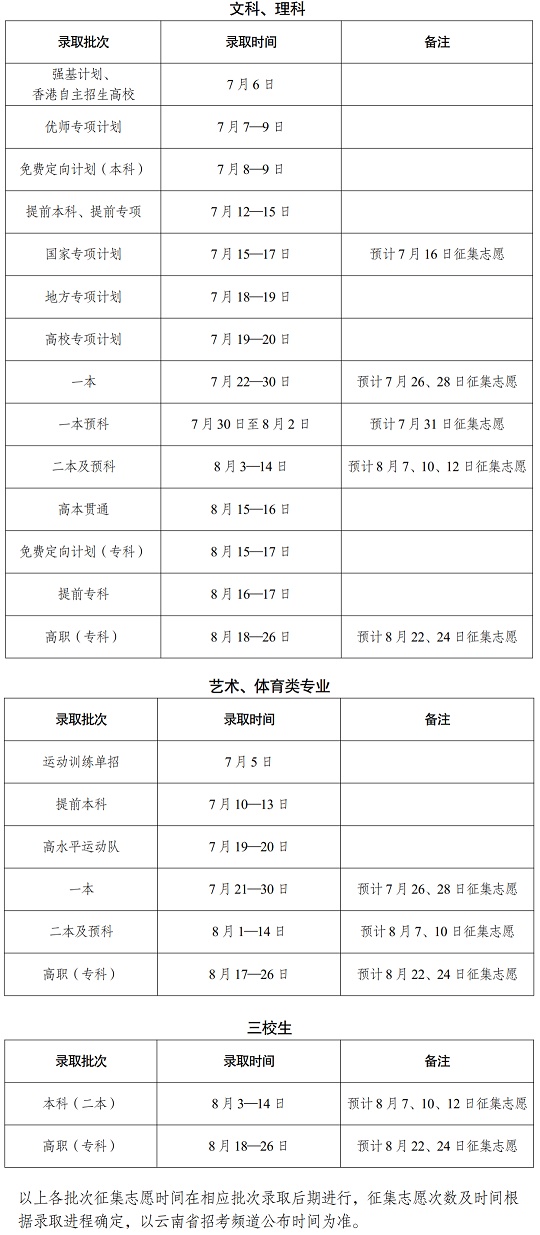 | 2024年云南省普通高校招生錄取時(shí)間進(jìn)度計(jì)劃 |