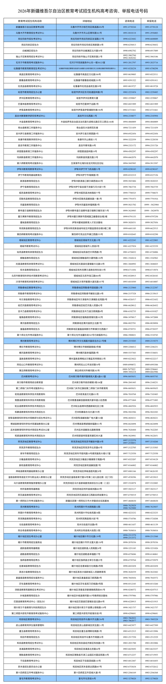 附件:2026年新疆維吾爾自治區(qū)教育考試機(jī)構(gòu)高考報名咨詢電話