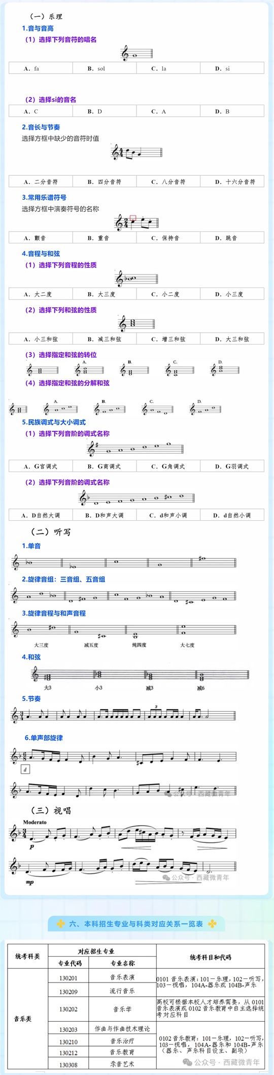 考試內(nèi)容:音與音高、音長(zhǎng)與節(jié)奏、常用樂(lè)譜符號(hào)、音程與和弦、民族調(diào)式與大小調(diào)式。