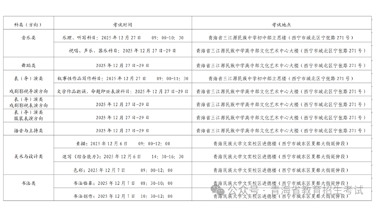 2.音樂類、舞蹈類、播音與主持類、表(導(dǎo))演類:2025年12月22日至12月29日。