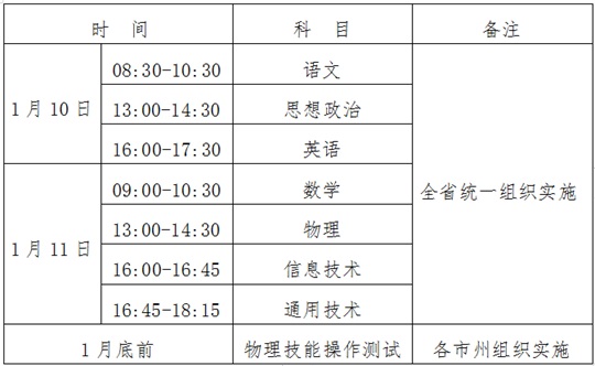 1.考試時(shí)間:2026年1月10日至11日。