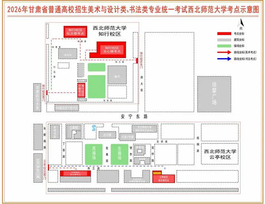 考點(diǎn)設(shè)在西北師范大學(xué)云亭校區(qū)(地址:蘭州市安寧區(qū)安寧東路967號(hào))及西北師范大學(xué)知行校區(qū)(地址:蘭州市安寧區(qū)邱家灣37號(hào))。