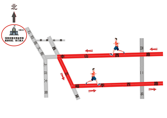 。ǘ3月30日上午(7:30開始),石家莊市將舉辦馬拉松賽事,途徑路段實行臨時交通管制(即禁即停、即放即行),請考生盡量避開管制路段,提早趕往考點,或提前安排在考點附近住宿(住宿地點應避開馬拉松賽區(qū))。石家莊市馬拉松賽路線圖如下:
