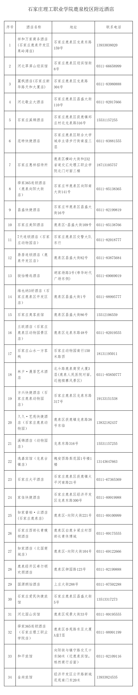 石家莊理工職業(yè)學院鹿泉校區(qū)附近賓館如下(僅供考生參考,住宿地點請避開馬拉松賽區(qū)):