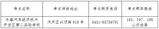 考點名稱:長春汽車經(jīng)濟技術(shù)開發(fā)區(qū)第二實驗學校?键c信息如下表:
