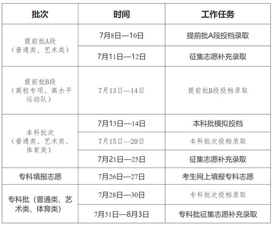 我省2025年普通高考各批次錄取時間已初步確定。具體安排如下。