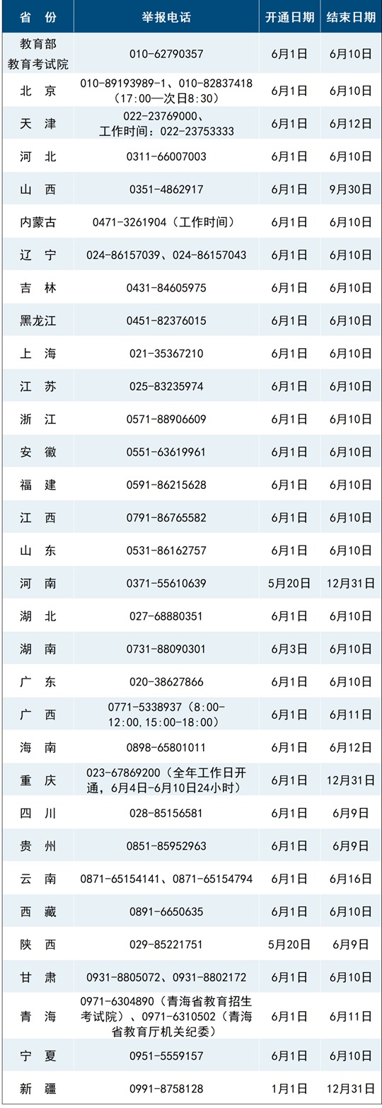 | 教育部和各。▍^(qū)、市)開(kāi)通2025年高考舉報(bào)電話 |
