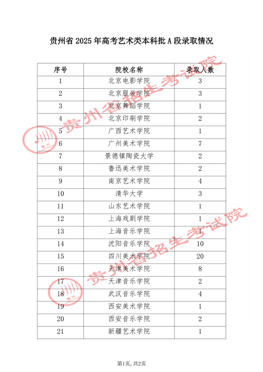 貴州省2025年高考藝術(shù)類(lèi)本科批A段錄取情況