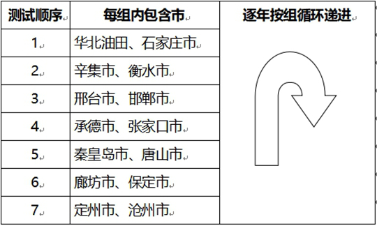 4.測(cè)試順序:采取循環(huán)遞進(jìn)方式安排各市考生測(cè)試順序。具體辦法為:每2市為一組,按往年測(cè)試順序?qū)?4個(gè)市分為7個(gè)組,逐年按組循環(huán)遞進(jìn)。2026年測(cè)試順序依次為:
