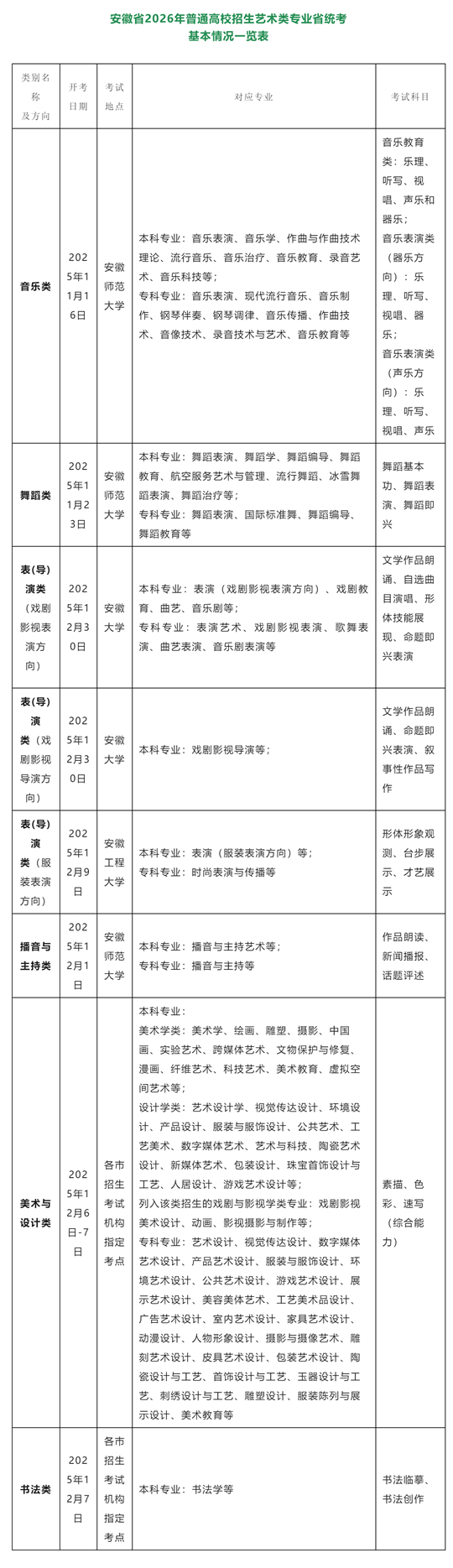| 安徽省2026年普通高校招生藝術專業(yè)考試簡章 |