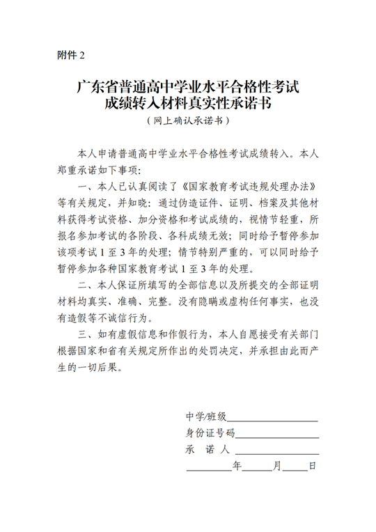 2.廣東省普通高中學(xué)業(yè)水平合格性考試成績(jī)轉(zhuǎn)入材料真實(shí)性承諾書(網(wǎng)上確認(rèn)承諾書)