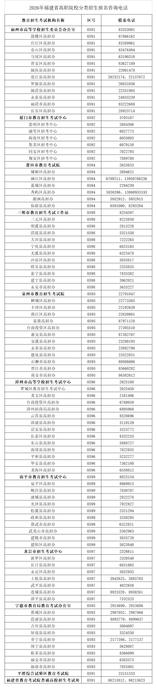 根據(jù)《福建省高等學(xué)校招生委員會(huì) 福建省教育廳關(guān)于做好2026年普通高等學(xué)校招生考試報(bào)名工作的通知》(閩招委〔2025〕9號(hào))和《福建省教育廳關(guān)于印發(fā)<福建省高職院校分類考試招生改革實(shí)施辦法>的通知》(閩教學(xué)〔2019〕35號(hào))等文件精神,為做好2026年我省高職院校分類考試招生(以下簡稱“高職分類招考”)報(bào)名工作,現(xiàn)將有關(guān)事項(xiàng)通知如下。