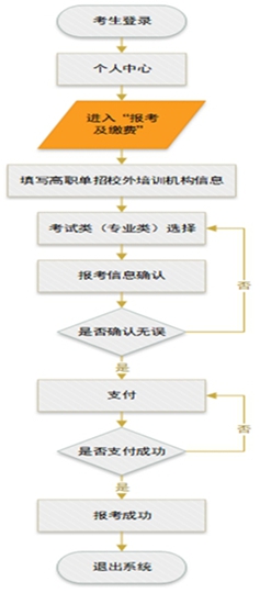 5.考生可選擇微信或支付寶,掃描二維碼進(jìn)行繳費(fèi)。繳費(fèi)成功后,報(bào)考狀態(tài)會(huì)顯示“報(bào)考成功”,考生可點(diǎn)擊“完成報(bào)考”按鈕返回個(gè)人中心,再次查看報(bào)考信息,核查無(wú)誤后可點(diǎn)擊頁(yè)面右上方的“退出系統(tǒng)”安全退出系統(tǒng)。具體報(bào)考流程如下: