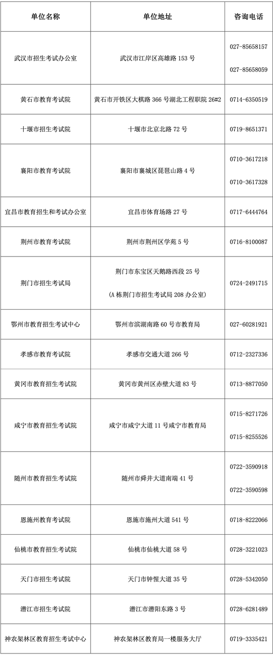 備注:報(bào)名期間,各縣(市、區(qū))教育考試機(jī)構(gòu)接受考生咨詢與服務(wù),考生可登錄各市州教育考試機(jī)構(gòu)官網(wǎng)或致電市州教育考試機(jī)構(gòu)查詢了解咨詢電話。