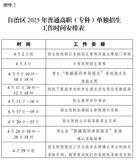 2.自治區(qū)2025年普通高職(?疲﹩为氄猩ぷ鲿r間安排表