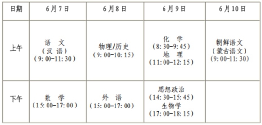 15.我省統(tǒng)一高考于6月7日開(kāi)始舉行,具體科目考試時(shí)間安排如下: