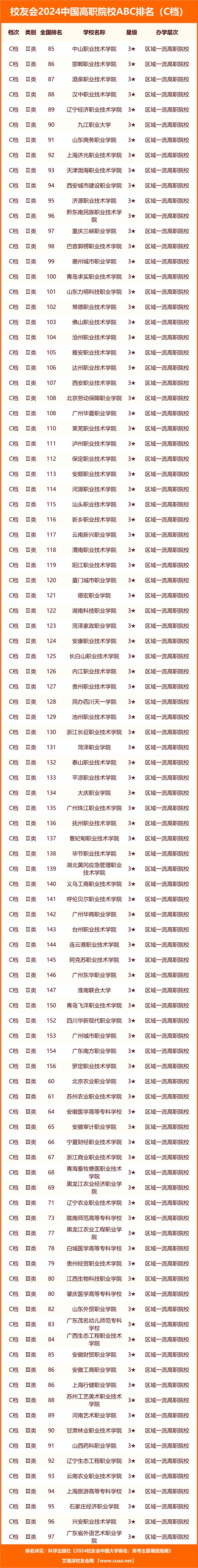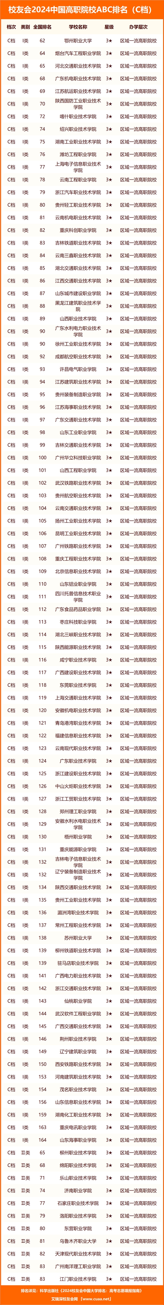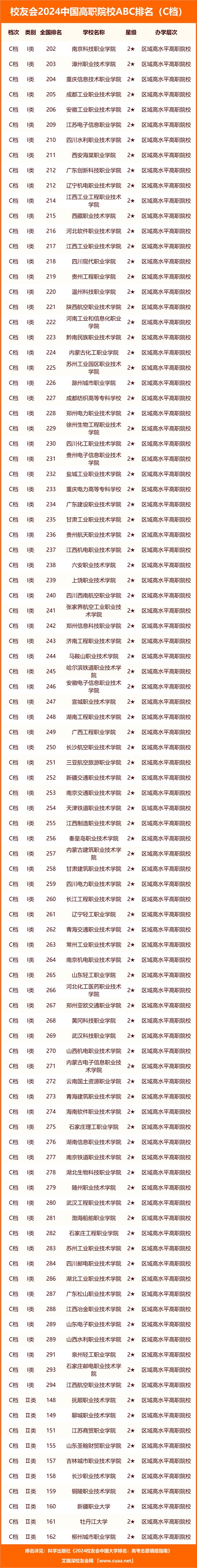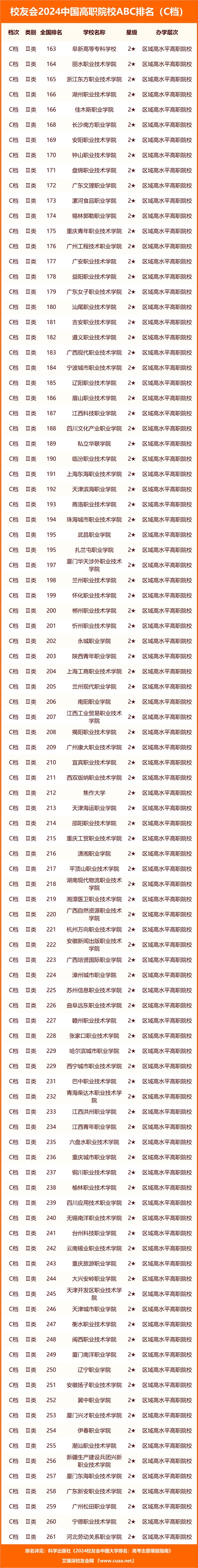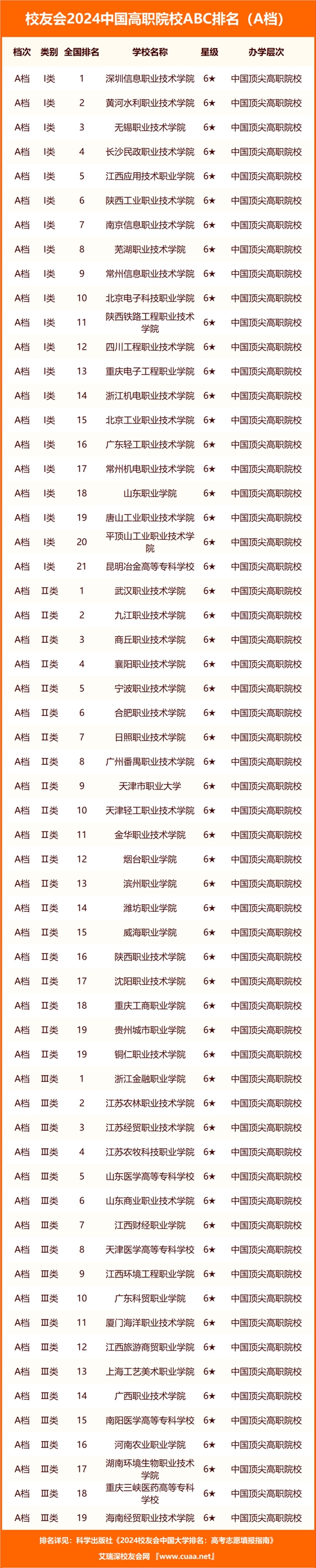 2024年1月16日,全國(guó)第三方大學(xué)評(píng)價(jià)機(jī)構(gòu)艾瑞深校友會(huì)網(wǎng)(Cuaa.net)正式公布《2024校友會(huì)中國(guó)大學(xué)排名:高考志愿填報(bào)指南》,最新發(fā)布校友會(huì)2024中國(guó)高職院校ABC排名,首次對(duì)中國(guó)高職院校實(shí)施分檔評(píng)價(jià),該書將由科學(xué)出版社公開出版發(fā)行。