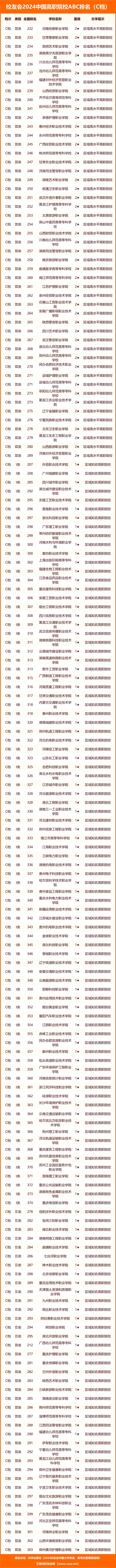 | 校友會(huì)2024中國(guó)高職院校ABC排名,深圳信息職業(yè)技術(shù)學(xué)院等雄居最高檔 |