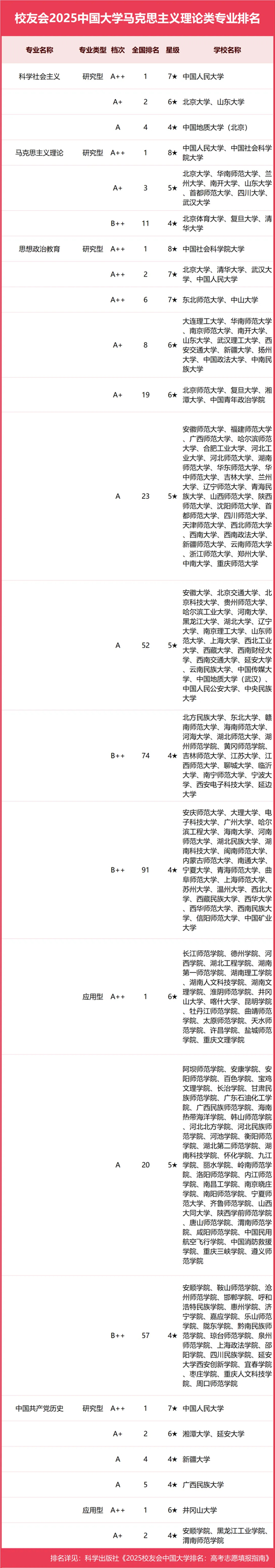 校友會(huì)2025中國大學(xué)馬克思主義理論類專業(yè)排名(應(yīng)用型)