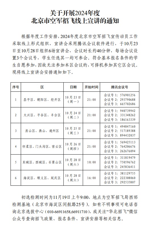 關(guān)于開展2024年度北京市空軍招飛線上宣講的通知