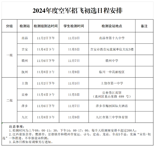 2024年度江西省空軍招飛初選日程安排