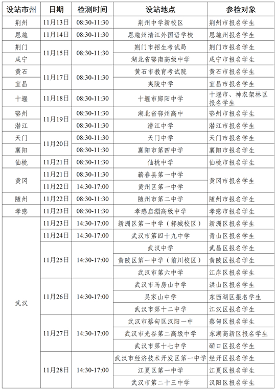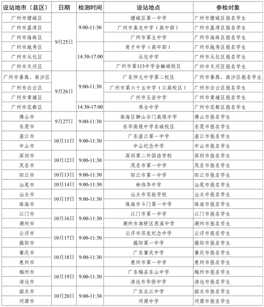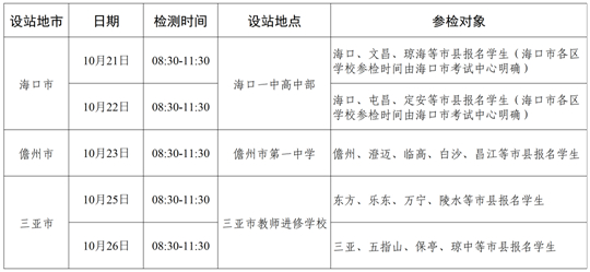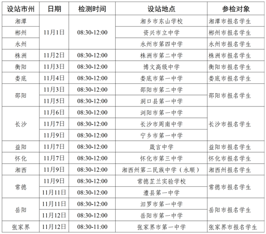 未設(shè)站地市、州(區(qū)、縣)報名學(xué)生根據(jù)自身實際情況合理選擇時間和設(shè)站地點參檢。